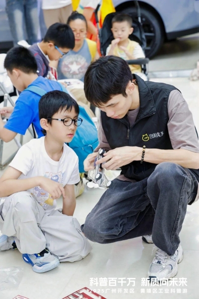 亲子队伍来到萝岗万达广场,体验一场“创科能手”快闪科普。“能装飞机、做镜子,太好玩啦!” 孩子们涌进科学区,攥着工具盒跃跃欲试。组装弹射飞机,调整机翼借风起飞;搭潜望镜,透过镜片看见别样视野;解特色密码;参与酸碱中和化学“表演”……这场探索之旅,没有枯燥的公式,只有边玩边学的快乐,让科学的种子在心里发芽。