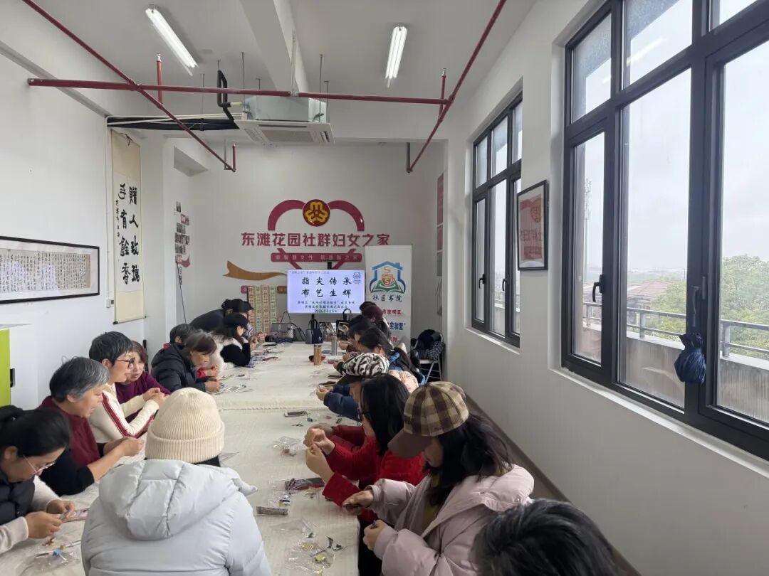 为深入传承中华优秀传统文化,丰富社区居民精神文化生活,提升社区科普服务效能,崇明区陈家镇东滩花园社区依托崇明区“东滩创想实验营”社区书院科普平台,组织开展了非遗土布胸针手工制作科普活动。