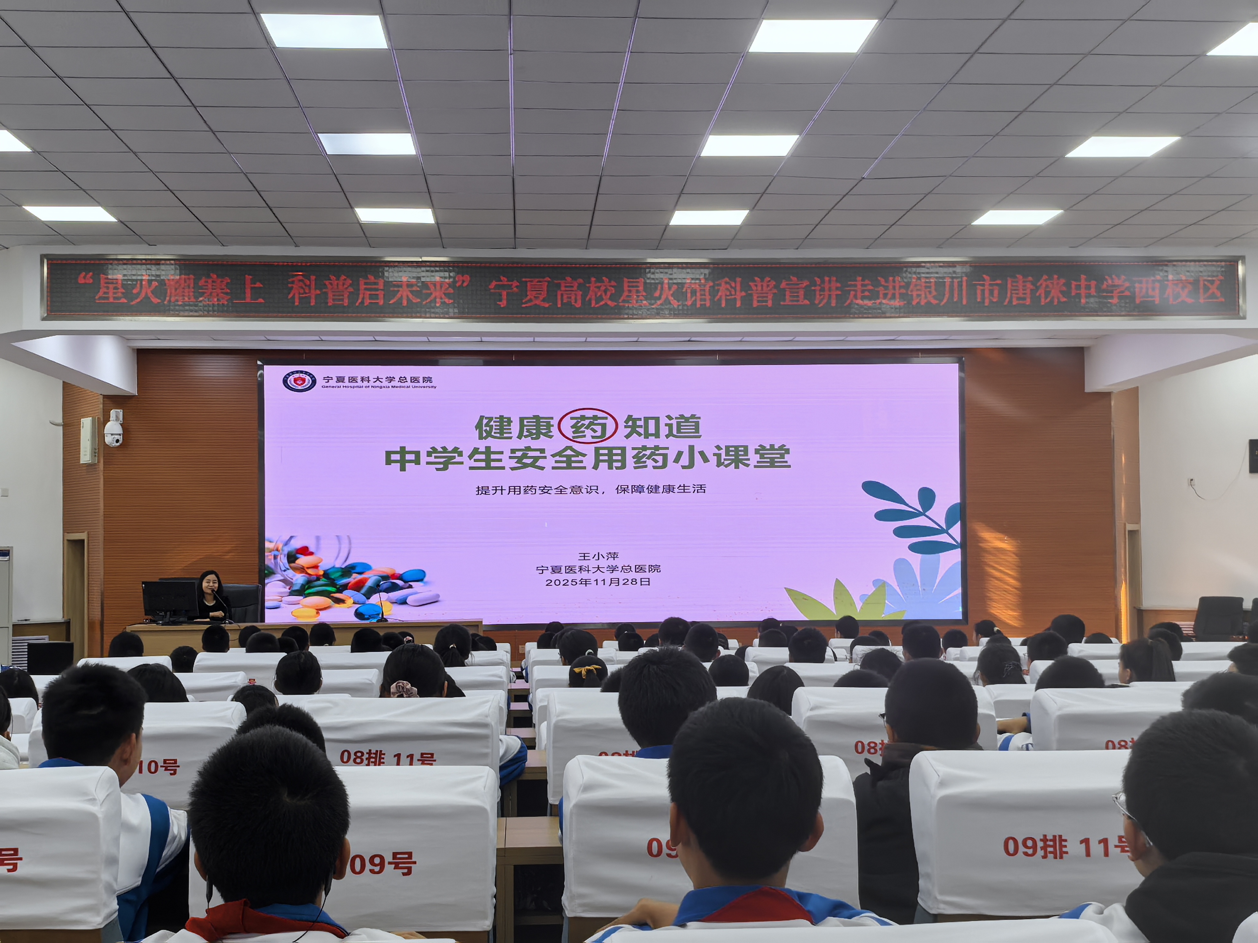 活动依托宁夏大学、宁夏医科大学、宁夏师范大学、银川科技学院高校“星火馆”资源,通过精准对接、送讲入校的方式,走进唐徕中学、银川市第二十四中学、西夏区实验小学、六盘山高级中学、固原一中及宁夏师范大学固原附属中学,举办生命健康、人工智能、地理科学、青春期心理、科学方法论科普宣讲,将前沿科学知识、实用生活技能和科学思维方法带进中小学校园,满足不同学段学生的认知需求与兴趣热点,为青少年点燃科学梦想,注入成长动能。
