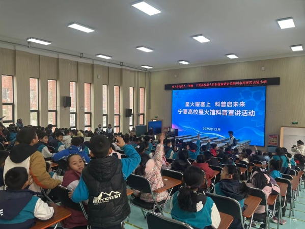 为推动高校“星火馆”优质科普资源向基层延伸,提升全区青少年科学素养,2025年11月28日至12月22日,宁夏科协举办6场“星火耀塞上 科普启未来”高校星火馆科普宣讲活动,惠及全区中小学师生1640余名。