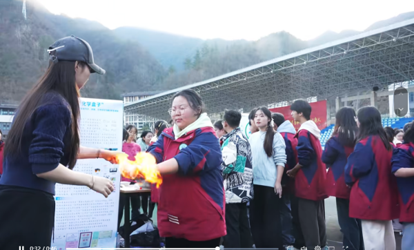 活动现场,镇安中学体育场人头攒动。来自陕西科技大学的科技社团志愿者们,将前沿实验室里的部分研究成果“搬”到了现场,并精心设计成可互动、可感知的科普展台。