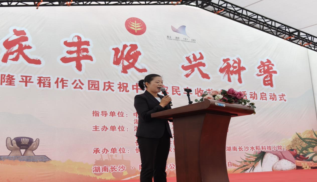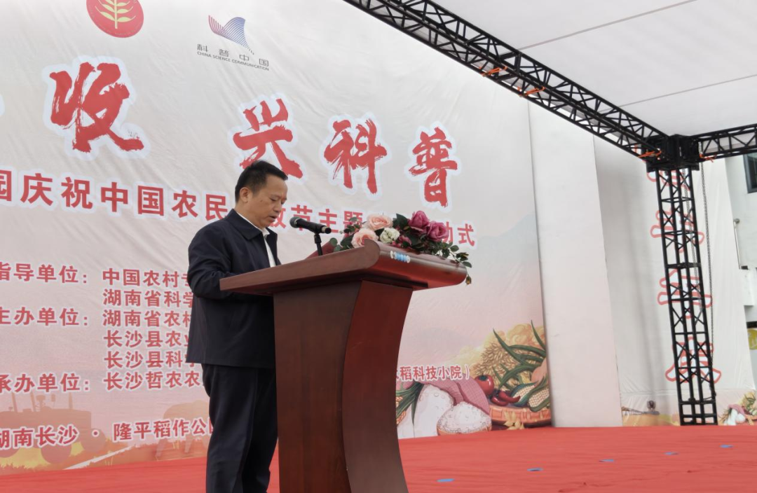 9月23日,由中国农技协、湖南省科协指导,湖南省农村专业技术协会联合会主办,湖南长沙水稻科技小院承办的全国科普月暨中国农民丰收节“庆丰收 兴科普” 活动在长沙县隆平稻作公园热闹启幕。