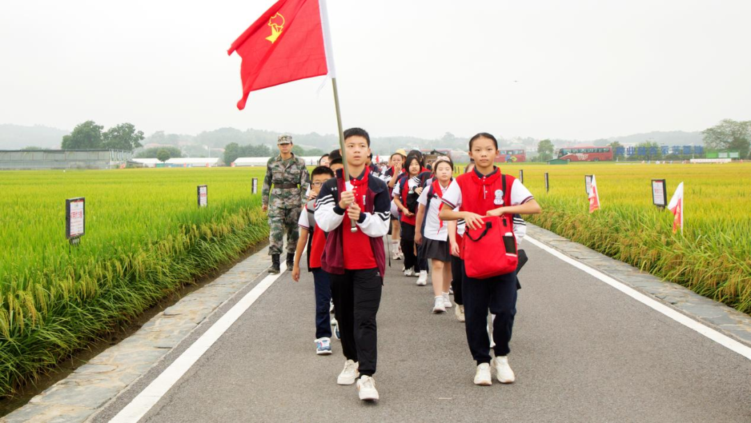 颐华学校8个班的学生下田间参与收割比赛