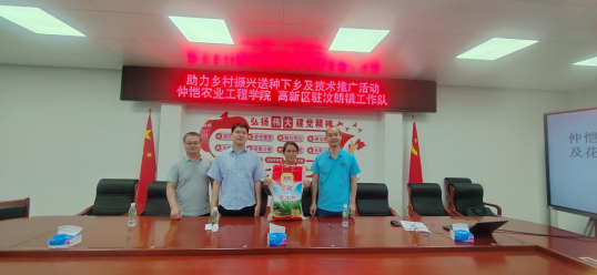 在怀集县汶朗镇人民政府举行的种子发放仪式上,一袋袋包装整齐、标注清晰的优质花生和玉米良种从唐军手中递给了农户。针对当地土壤气候条件及传统品种退化、产量瓶颈等问题,唐军精心筛选并引进了仲恺农业工程学院自主培育的高产、高油、抗病性强的花生品种——“仲恺花1号及玉米品种--仲甜101、仲甜12号。种子发放结束后,种植专家刘文副教授就花生的播种与生育管理、病虫害防控、水肥管理等花生种植关键技术进行了培训和答疑。