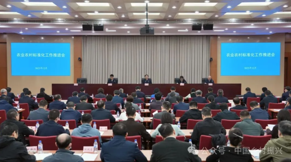 12月5日,农业农村部召开农业农村标准化工作推进会,部党组书记、部长韩俊出席会议并讲话。会议强调,要深入学习贯彻党的二十届四中全会精神和习近平总书记重要指示精神,认真落实党中央、国务院决策部署,把农业农村标准化工作摆在重要位置,加快构建适应高质量发展要求的农业农村标准体系,以标准升级引领农业农村高质量发展。